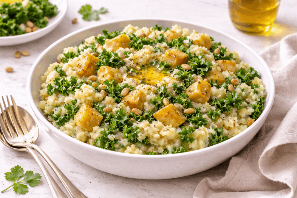 5. Italiaanse Boerenkoolstoofpot met Pesto en Parmezaanse Kaas: