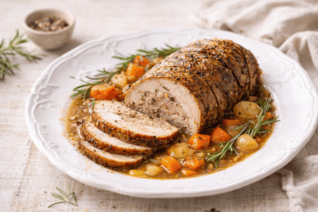 - Verse kruiden zoals rozemarijn, tijm of basilicum: geven een intense aroma aan de rollade