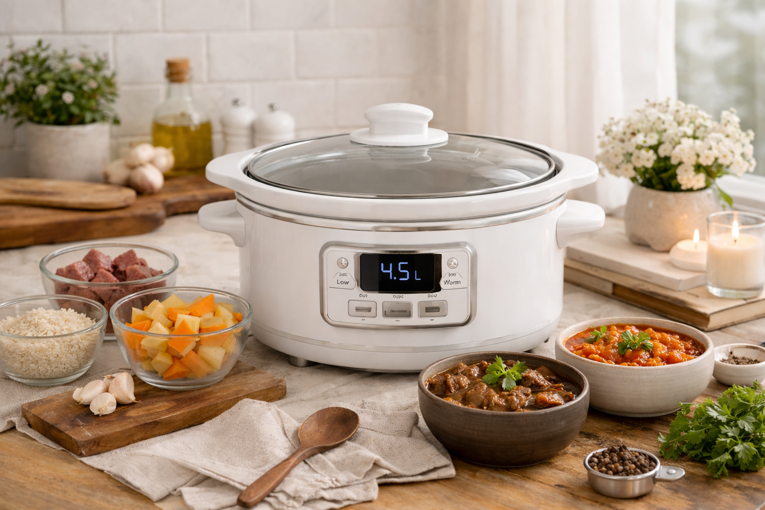 Voor de meeste huishoudens is een slowcooker van ongeveer 4 tot 5 liter de beste keuze. Deze maat is groot genoeg voor stoofgerechten en soepen, maar nog compact genoeg voor dagelijks gebruik.