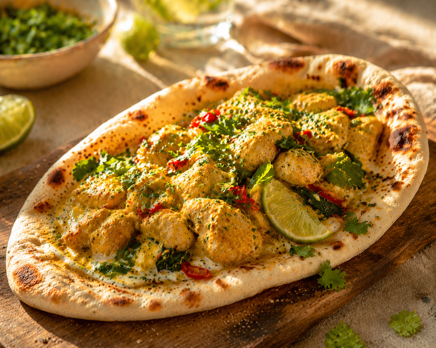 - Naanbrood: Een zacht en luchtig Indiaas brood dat perfect is om de curry mee op te scheppen.