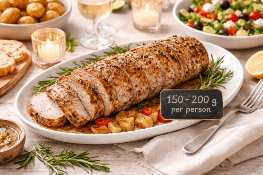 Voor rollade in de slowcooker kun je het beste uitgaan van 150 tot 200 gram per persoon