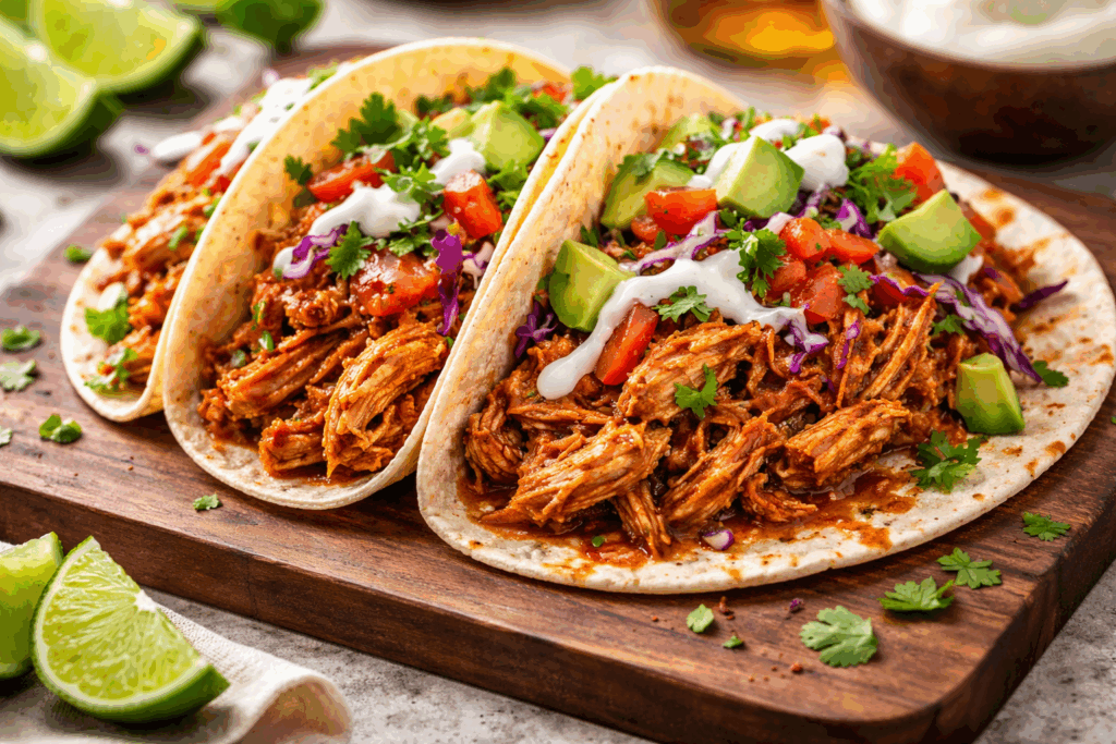 Malse pulled chicken uit de slowcooker, perfect voor wraps, broodjes of taco’s.