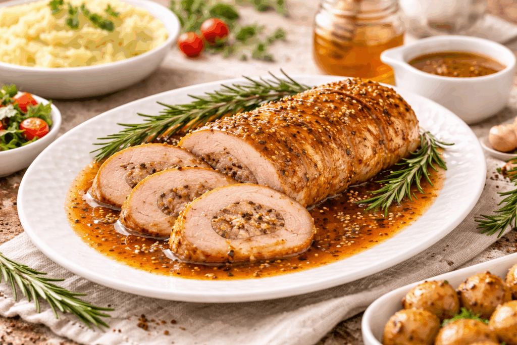 Bij varkensrollade is aanbraden extra belangrijk. Dit zorgt voor: